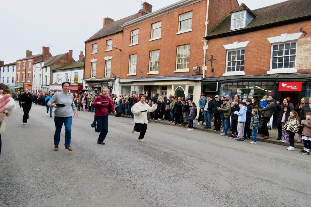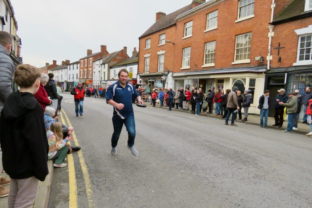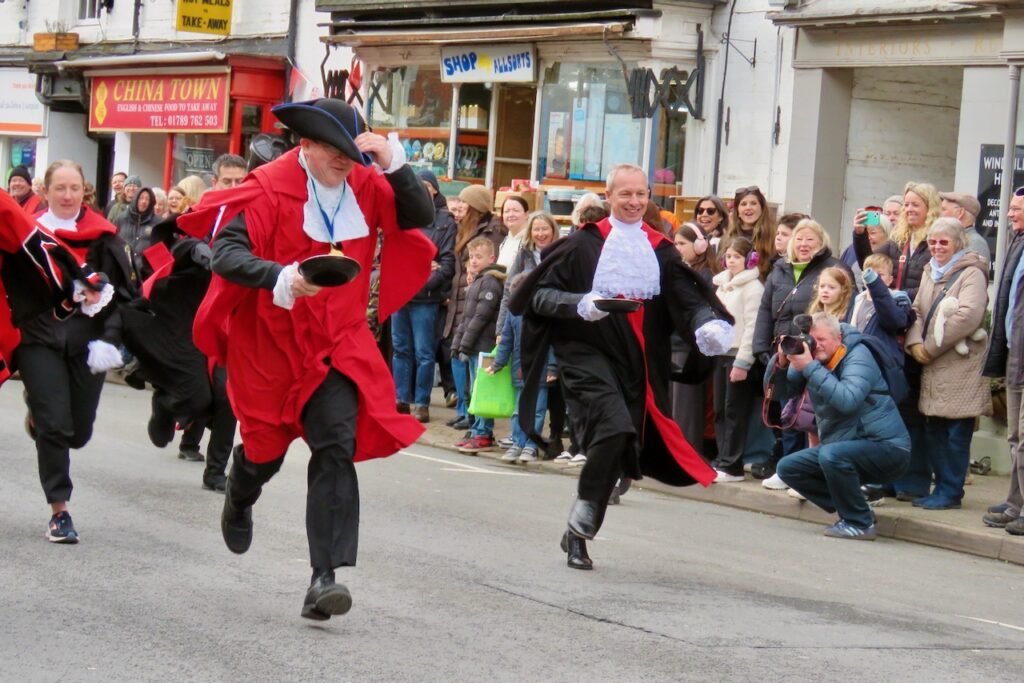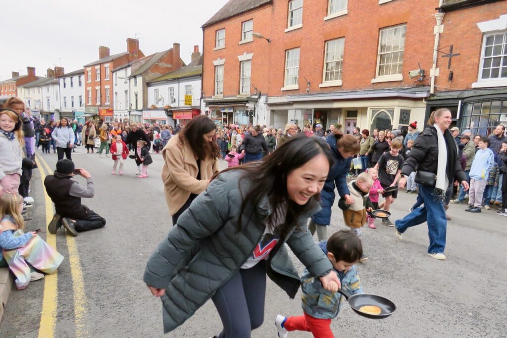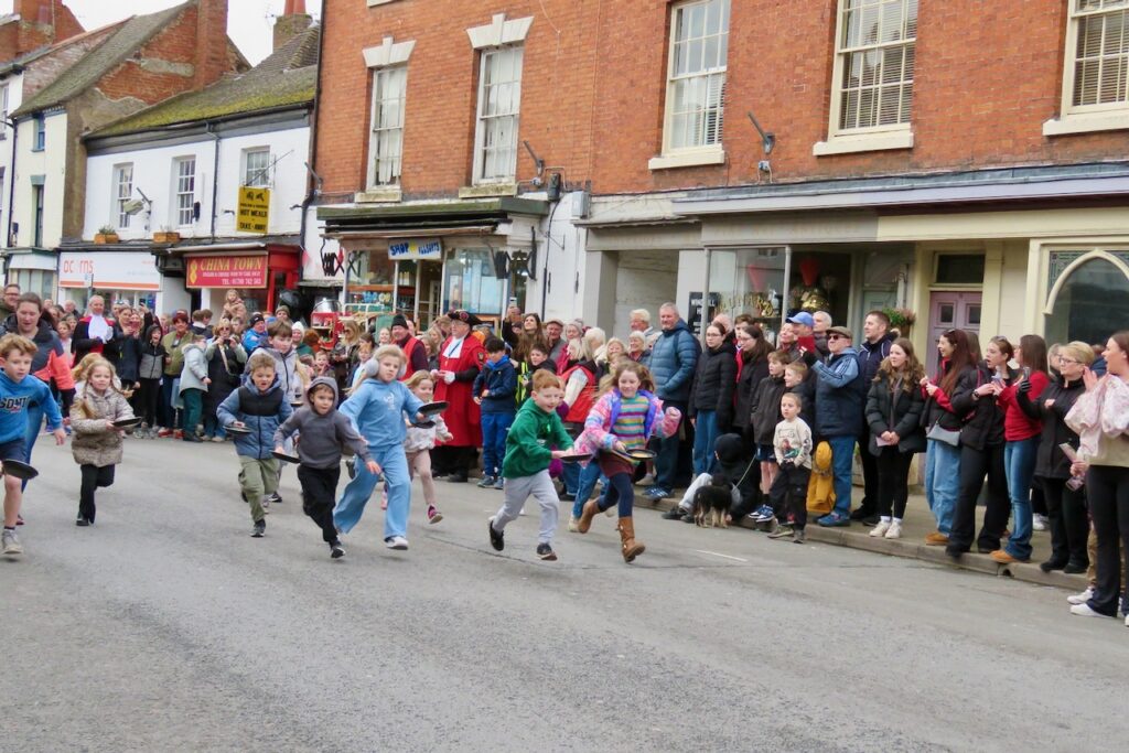 There are pancake races in numerous locations around the UK every Shrove Tuesday, but a few stand out and the well-organised event at Alcester is one of them. Pancakes are traditionally eaten on Shrove Tuesday to use up the forbidden ingredients once eschewed by the faithful during Lent, and while a few people still give something up for the penitential season, with starts the following day on Ash Wednesday, most people mark the occasion by eating pancakes. Officials of the Court Leet take their places for the first race dressed in their regalia, lining up with their frying pans and running up to the finishing line beside St Nicholas’ Church. Many more races follow for men, women, children divided into heats by age and an inclusive Diversity Race, as well as relays for local businesses and pubs. Pancakes must be tossed along the way (and a special crew follow along gathering up the dropped pieces!). There’s a positive atmosphere and everyone gets a round of applause for taking part- and there are prizes for the winners.