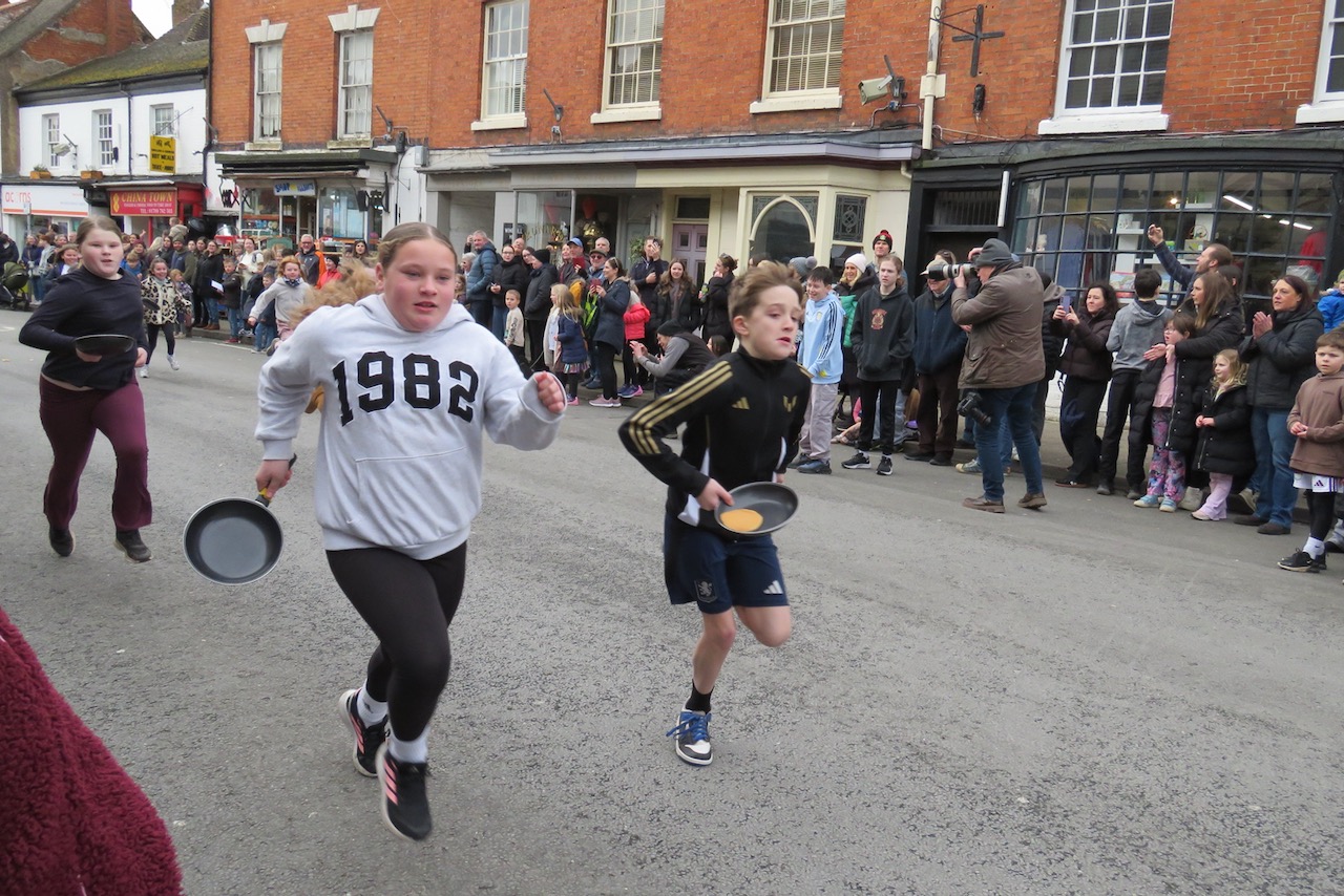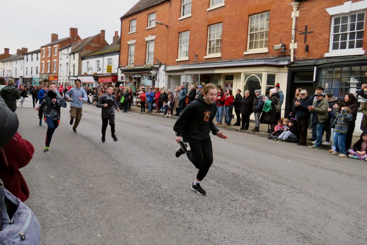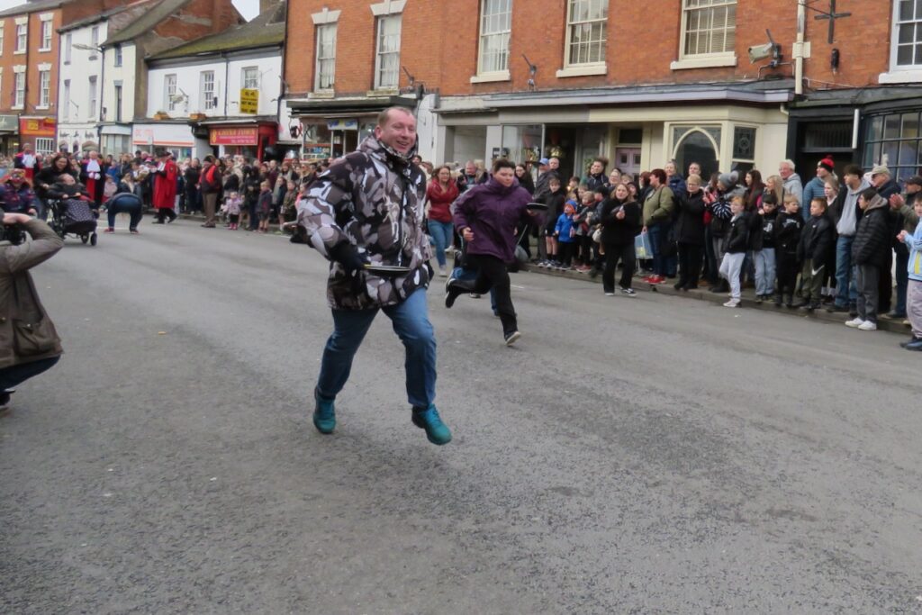 There are pancake races in numerous locations around the UK every Shrove Tuesday, but a few stand out and the well-organised event at Alcester is one of them. Pancakes are traditionally eaten on Shrove Tuesday to use up the forbidden ingredients once eschewed by the faithful during Lent, and while a few people still give something up for the penitential season, with starts the following day on Ash Wednesday, most people mark the occasion by eating pancakes. Officials of the Court Leet take their places for the first race dressed in their regalia, lining up with their frying pans and running up to the finishing line beside St Nicholas’ Church. Many more races follow for men, women, children divided into heats by age and an inclusive Diversity Race, as well as relays for local businesses and pubs. Pancakes must be tossed along the way (and a special crew follow along gathering up the dropped pieces!). There’s a positive atmosphere and everyone gets a round of applause for taking part- and there are prizes for the winners.