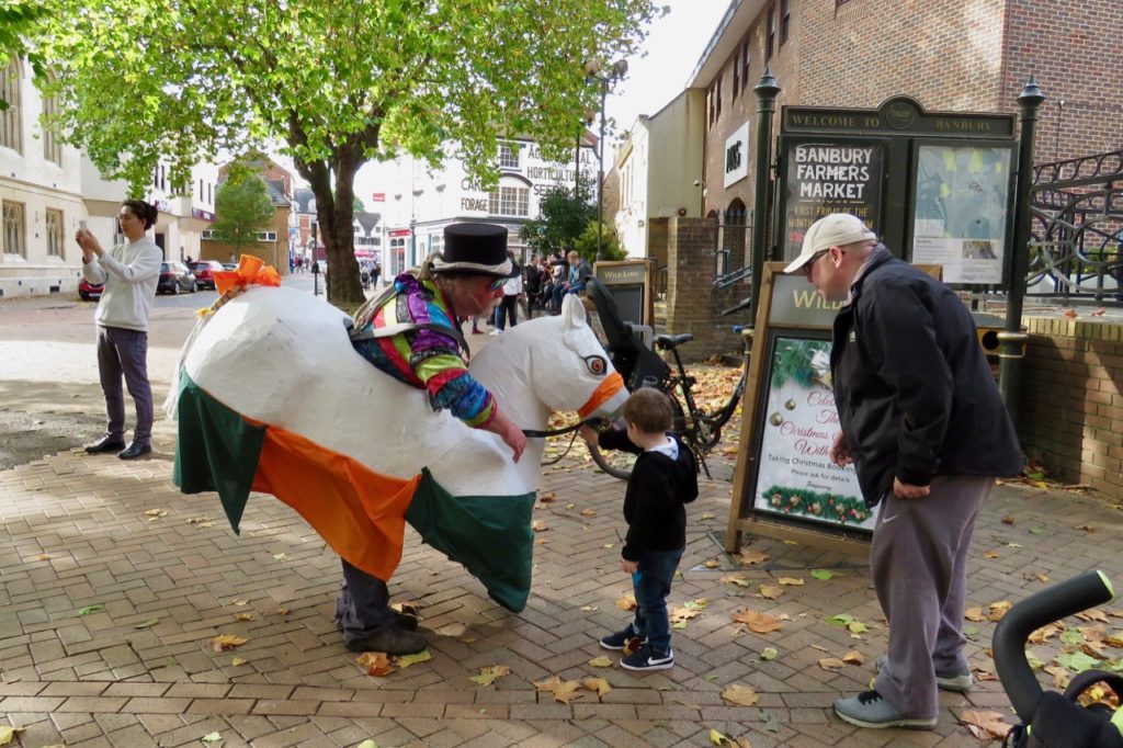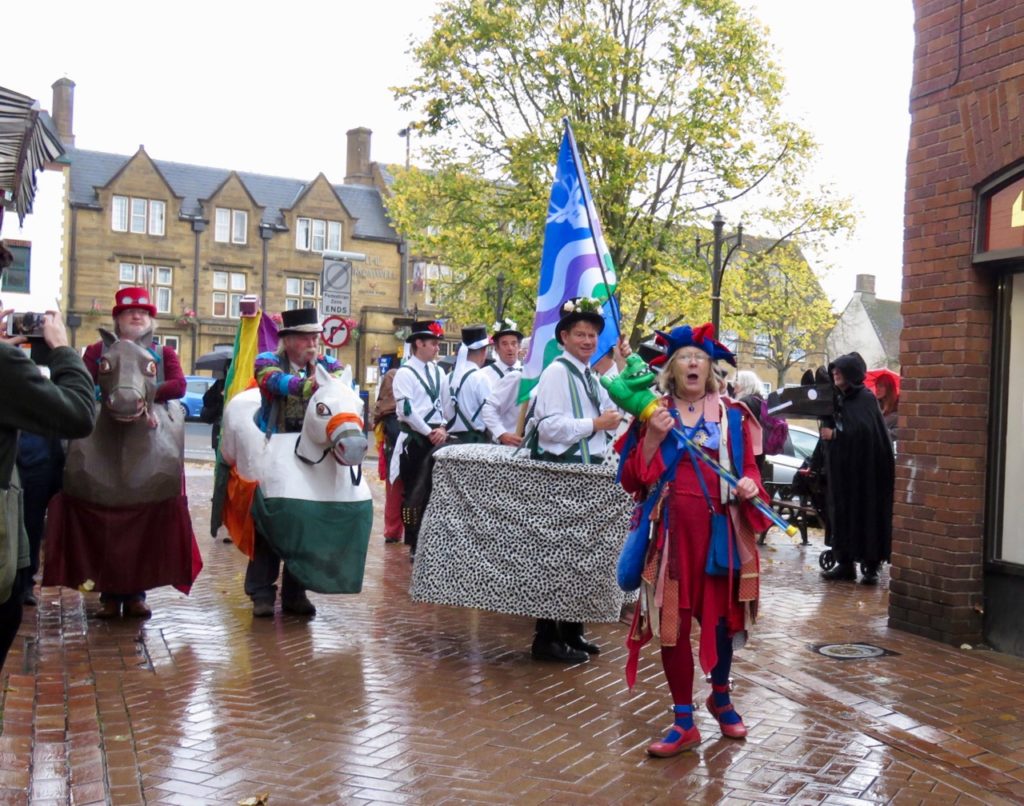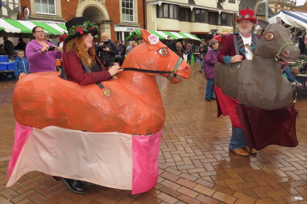 Every October the town of Banbury is overrun by an influx of unusual equines and their companions – the hobby horses have come to town! Now there is a Hobby Horse Dance Out organised by Adderbury Village Morris, whereas in the past there was a full Festival, which was a relatively recent custom celebrating the ancient hobby horse of lore and legend; up to 20 horses and other beasts travelled from all over the country to take part but now it’s on a smaller scale. You can still expect plenty of morris dancing, capering and neighing with performances taking place all around town. The event used to be over a weekend in July, but then merged with Banbury Folk Festival in the autumn, which was a folk music festival featuring major well-known acts. The Hobby Horse Festival was then usually a one-day event taking place on the Saturday of the Folk weekend and it may well return in future in full.