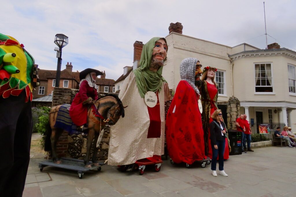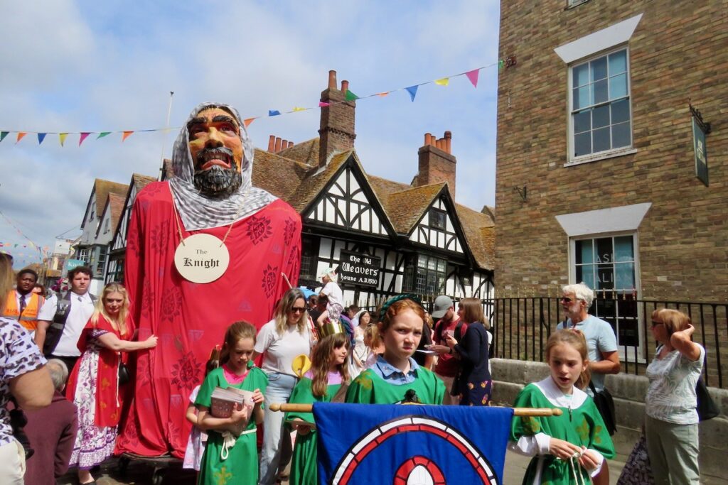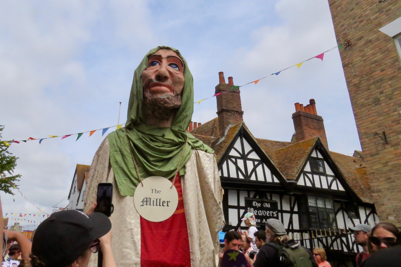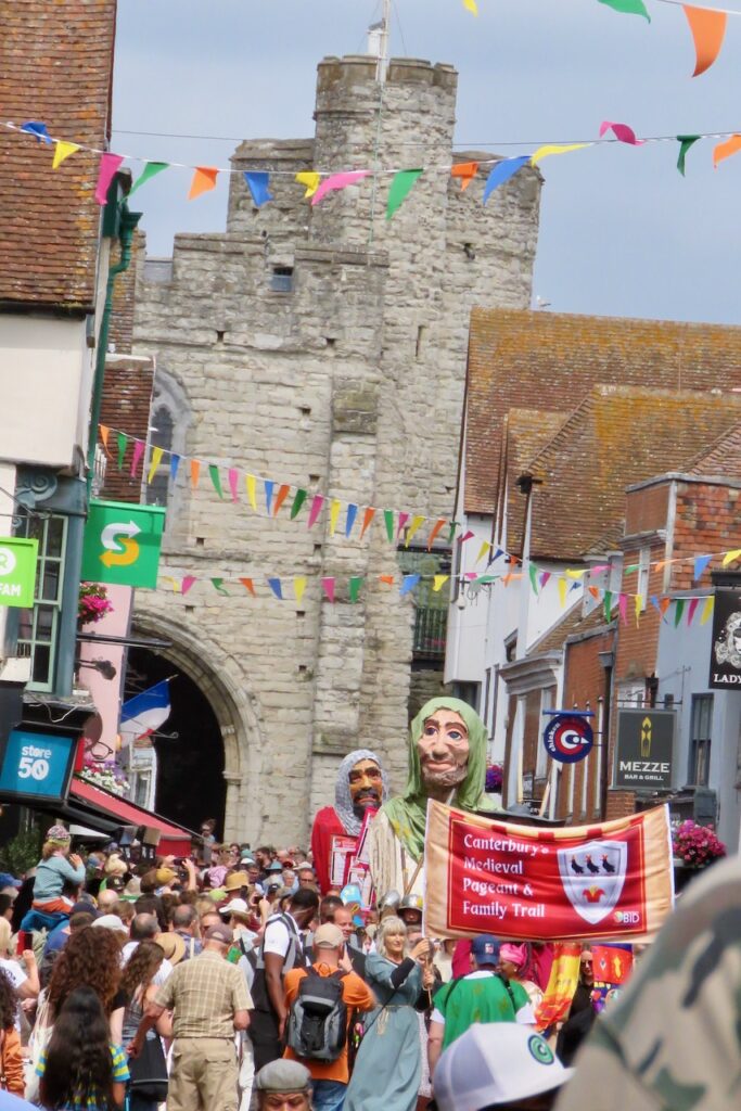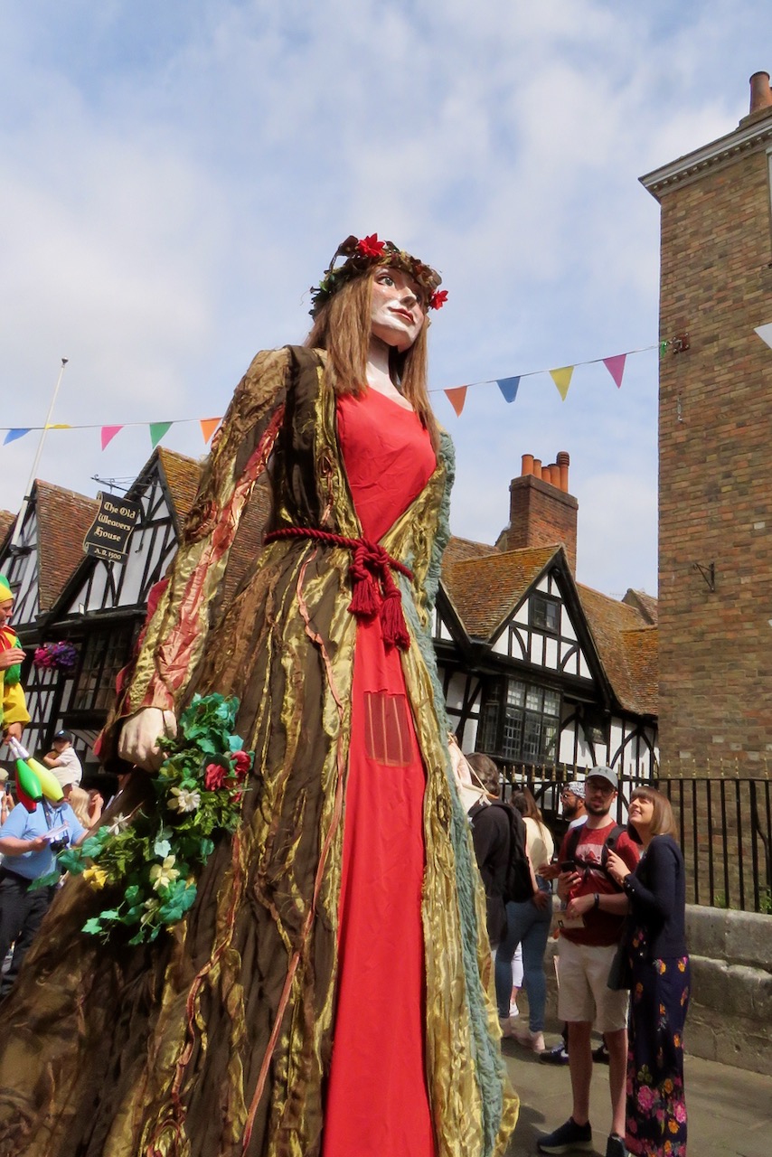 Now established for a decade, the event at Canterbury is very much in the tradition of the summer parades that took place in cities in the middle ages, with costumed participants, local dignitaries and several giant puppets. The assembled costumed participants gather at the Westgate and process around the city High Street and adjoining thoroughfares, ending in the Cathedral precincts. When we visited, the theme was the Canterbury Tales and after the parade, performers acted out a couple of the tales from Chaucer’s magnum opus on a stage beside the walls of the Cathedral church. There were also a range of family activities at locations around town throughout the day, with a themed trail to follow and cash rewards for the children in the form of chocolate coins!