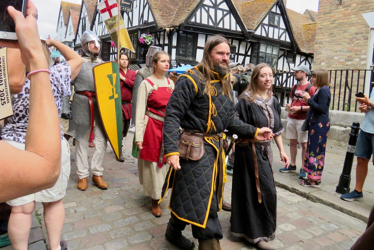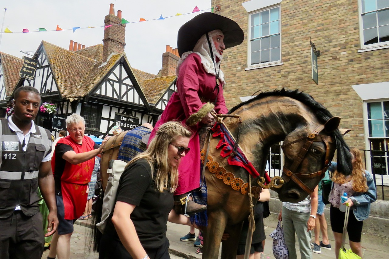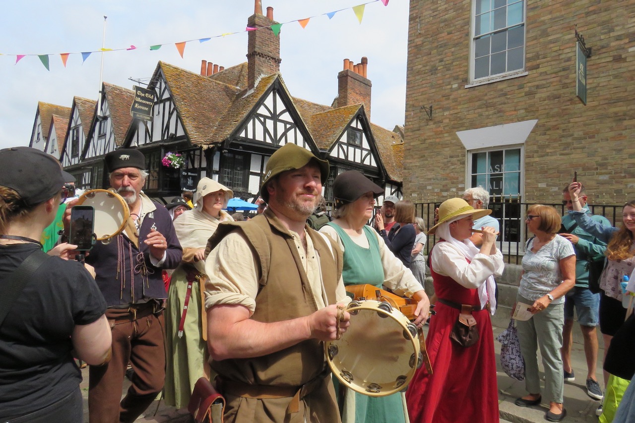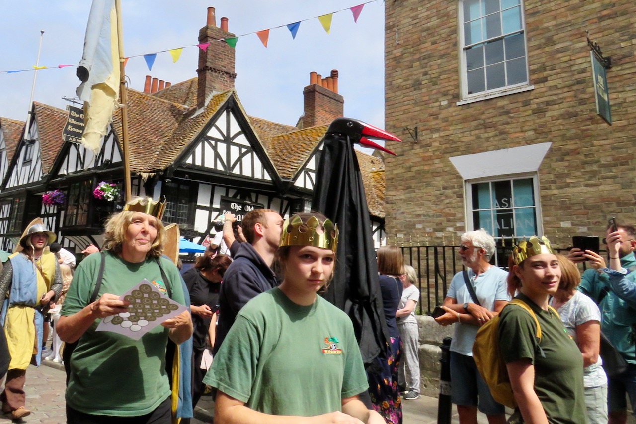 Now established for a decade, the event at Canterbury is very much in the tradition of the summer parades that took place in cities in the middle ages, with costumed participants, local dignitaries and several giant puppets. The assembled costumed participants gather at the Westgate and process around the city High Street and adjoining thoroughfares, ending in the Cathedral precincts. When we visited, the theme was the Canterbury Tales and after the parade, performers acted out a couple of the tales from Chaucer’s magnum opus on a stage beside the walls of the Cathedral church. There were also a range of family activities at locations around town throughout the day, with a themed trail to follow and cash rewards for the children in the form of chocolate coins!