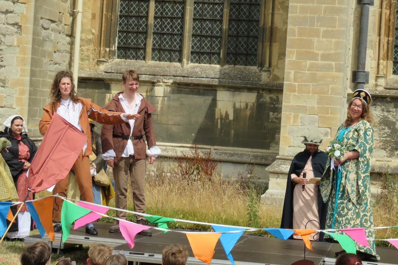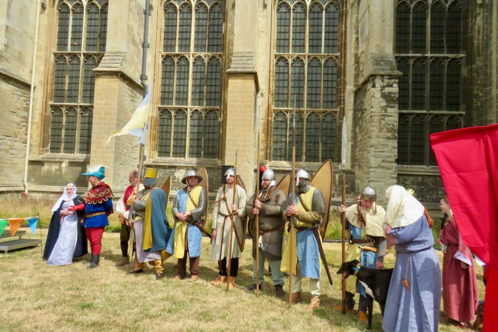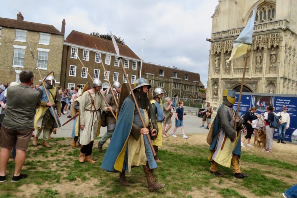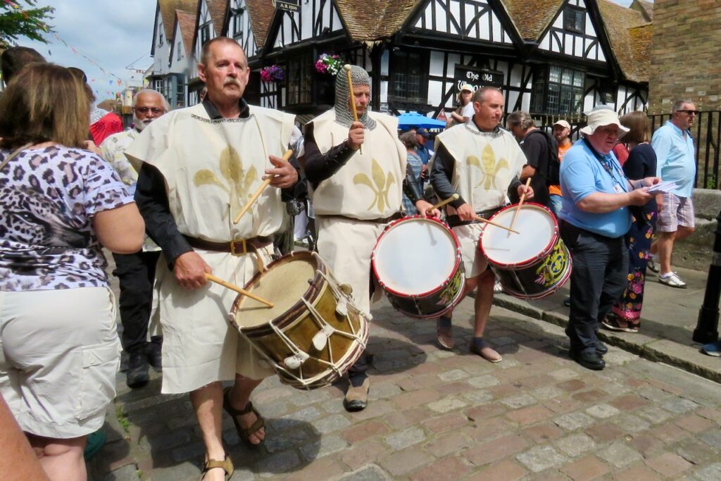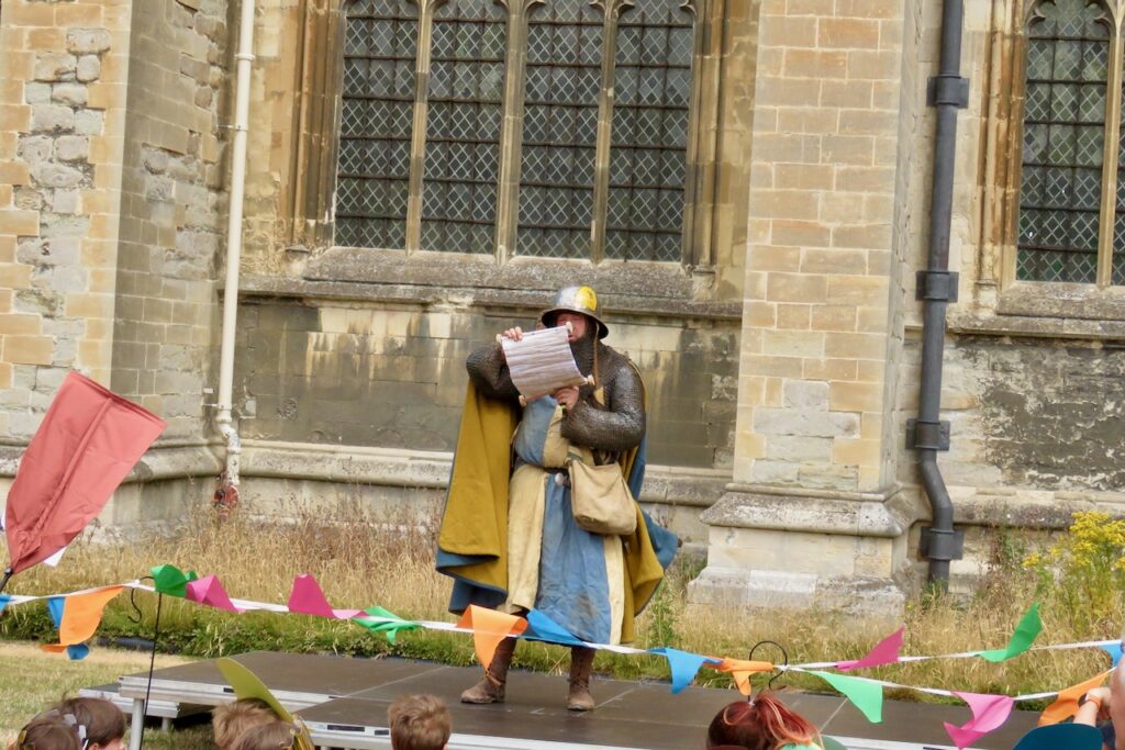 Now established for a decade, the event at Canterbury is very much in the tradition of the summer parades that took place in cities in the middle ages, with costumed participants, local dignitaries and several giant puppets. The assembled costumed participants gather at the Westgate and process around the city High Street and adjoining thoroughfares, ending in the Cathedral precincts. When we visited, the theme was the Canterbury Tales and after the parade, performers acted out a couple of the tales from Chaucer’s magnum opus on a stage beside the walls of the Cathedral church. There were also a range of family activities at locations around town throughout the day, with a themed trail to follow and cash rewards for the children in the form of chocolate coins!