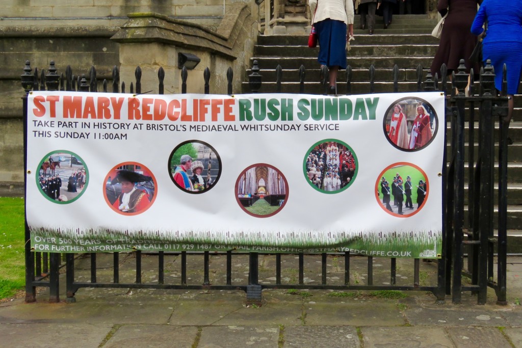 Before churches had paved floors, rushes were strewn to keep the earth floors sweet and it was common to make a special occasion from their annual renewal. Few such customs survive and the ones which do are mainly in North-West England so the service at St Mary Redcliffe in Bristol is special. Its history can be traced back to the fifteenth century when it was founded by local merchant William Spenser and today the procession is still attended by Bristol’s Lord Mayor, High Sheriff, Chief Constable, Sword Bearer, Aldermen and Councillors in their regalia. The church is lavishly decorated with flowers and herbs, the dignitaries are all given nosegays and the floor is covered with rushes; after the service refreshments are served outside ( sherry and delicious madeira cake). Those seated in the aisles can watch the parts of the service which are out-of-view on thoughtfully placed big screens. It’s a traditional service with a superb choir.