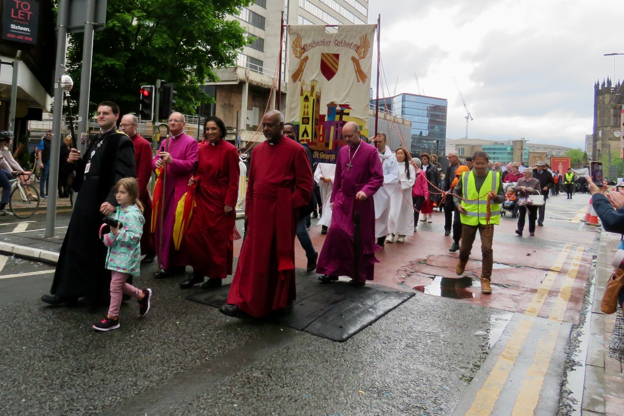 Whit Sunday is the seventh sunday after Easter, so varies in date depending on when Easter falls;  it’s between mid-May and mid-June each year. The origins of the name are obscure but we know that the festival commemorates the descent of the Holy Spirit on the Disciples. In the past it was a popular time for events to be held such as fairs, morris dances, fetes, walks and parades, many of which have been moved to the more predictable date of Spring Bank Holiday which always falls at the end of May (like the Manchester Whit Walk, illustrated).