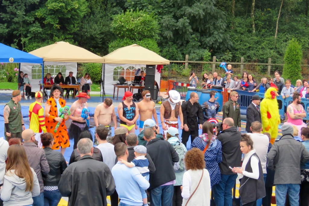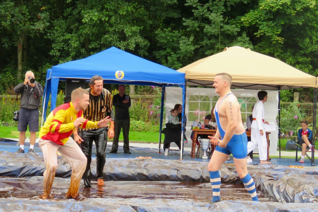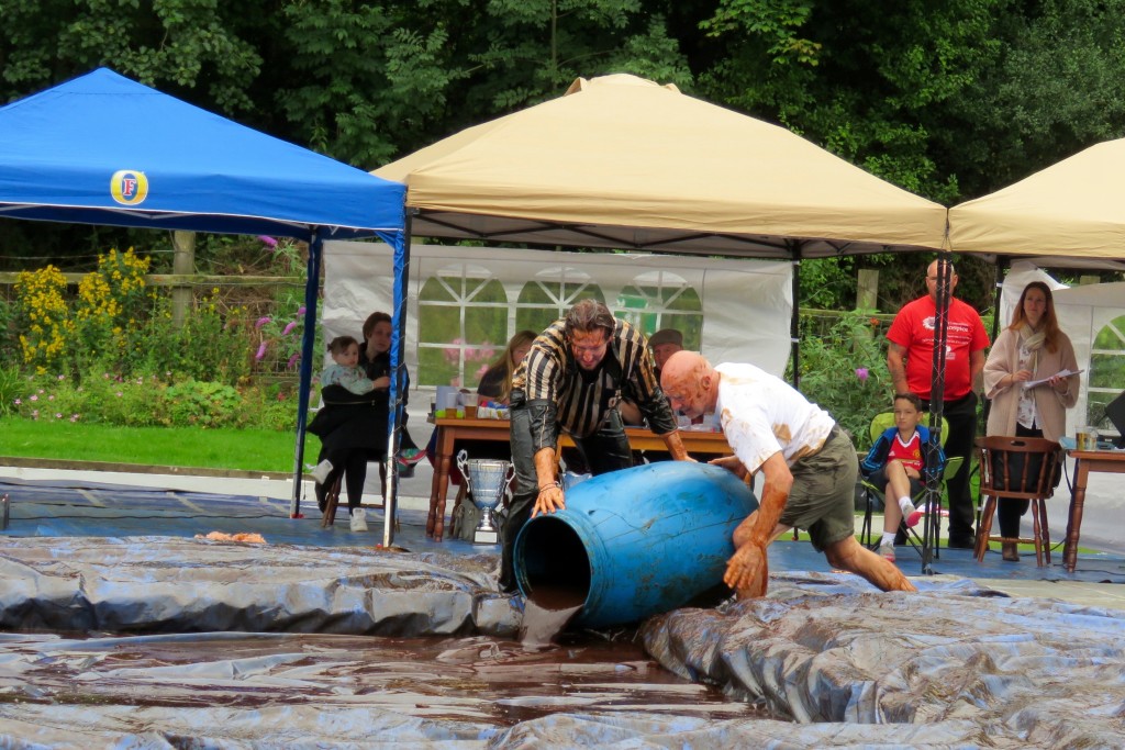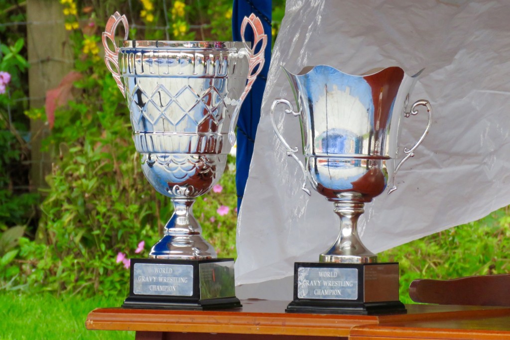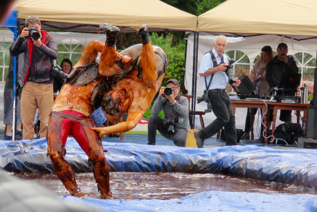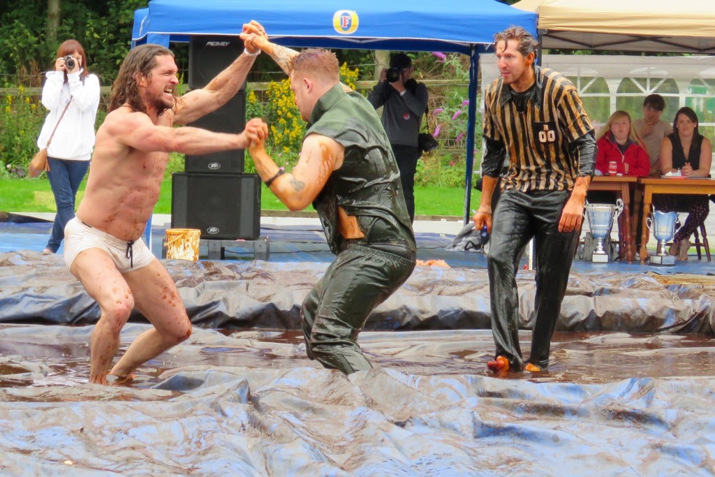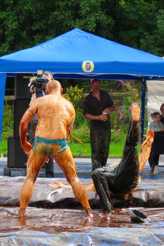 The noble art of gravy-wrestling is a comparative newcomer to the sporting scene, beginning in 2007. Competitors must wrestle in a 16-foot pool of Lancashire Gravy for 2 minutes and are scored on technique as well as their ability to please the crowd. Rules are similar to regular wrestling,but with the added bonus of gravy! What’s not to like? At intervals the gravy pool is topped up with steaming fresh supplies from barrels prepared earlier in the day, and when some rounds are hard to call the judges ask the crowd for their opinion. Between rounds the competitors are hosed down by the local fire brigade, and the winner of each round goes forward into quarter and semi-finals with classes for men and women, before the all important final championships and the presentation of the silverware.